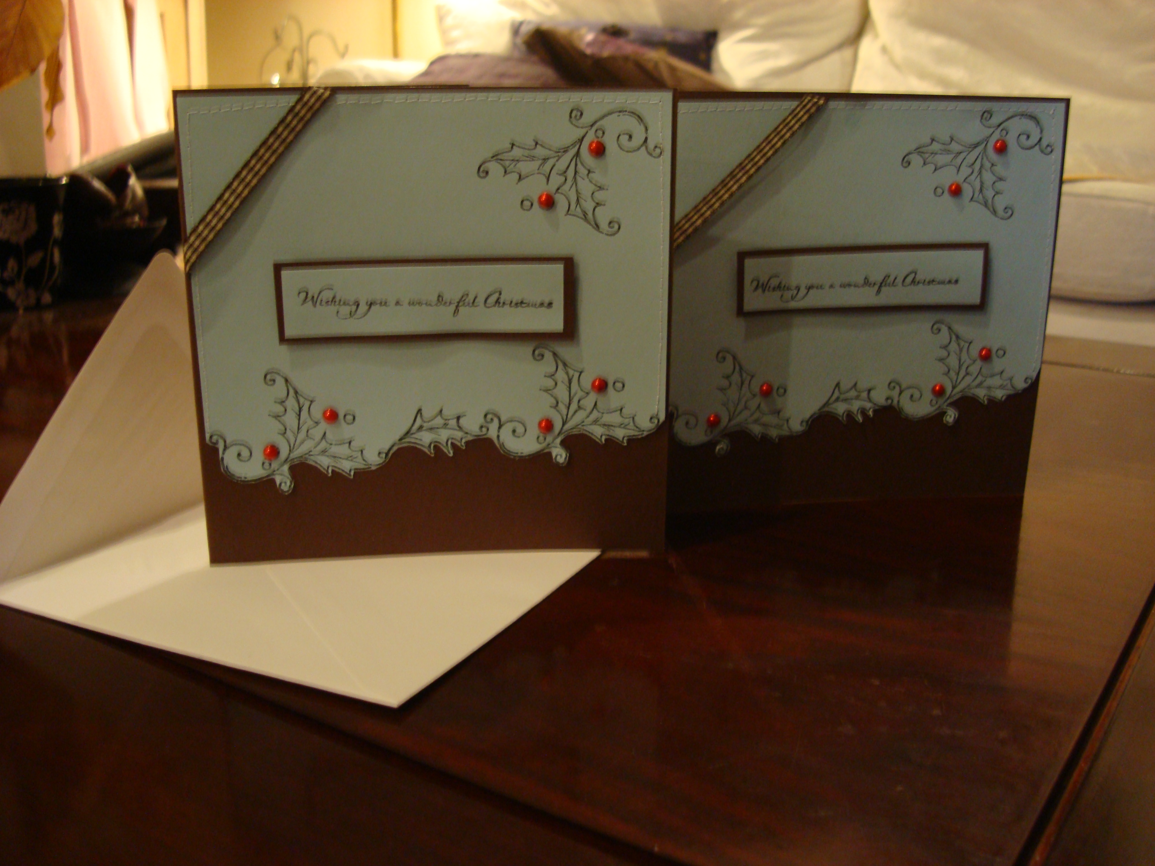 Paper CraftChristmas Card update December 8, 2011March 12, 2012 rustyblue85 Eeek!!! I have cut it a bit fine, but my handmade Christmas Cards are finished to send off to my friends!! Slightly different from the original suggestion, but I think it’s better to not have them exactly the same so they are a bit original. Share this: Click to share on X (Opens in new window) X Click to share on Facebook (Opens in new window) Facebook Click to share on Pinterest (Opens in new window) Pinterest Like Loading... Related Published by rustyblue85 An artistic soul trapped in a scientific workplace... View all posts by rustyblue85