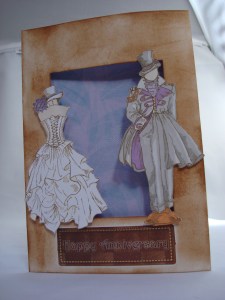 He plays guitar in a female-fronted hard rock band when he isn’t being an engineer and she is a craft-aholic in her spare time (just like me!) so I wanted to make them an extra-special card to remember their big day. The colour scheme at their wedding was grey and dark purple, so I wanted to use this colour pallet in their anniversary card too.