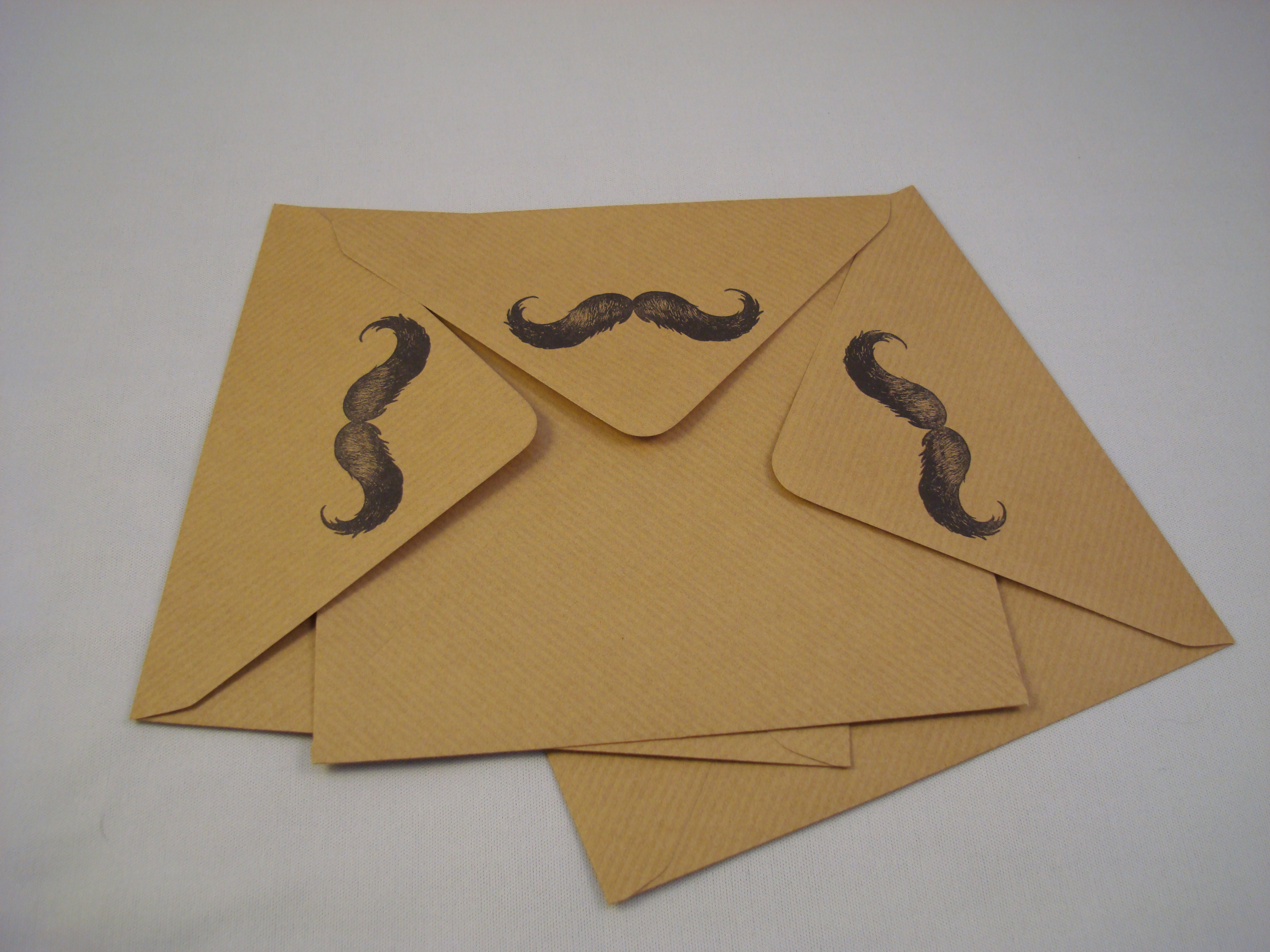 I started with a kraft base card and envelopes. I stamped a single moustache from the ‘Mr Fan-tash-tic’ set from IndigoBlu in Archival Ink in Jet Black (Ranger) on the flap of the envelopes.