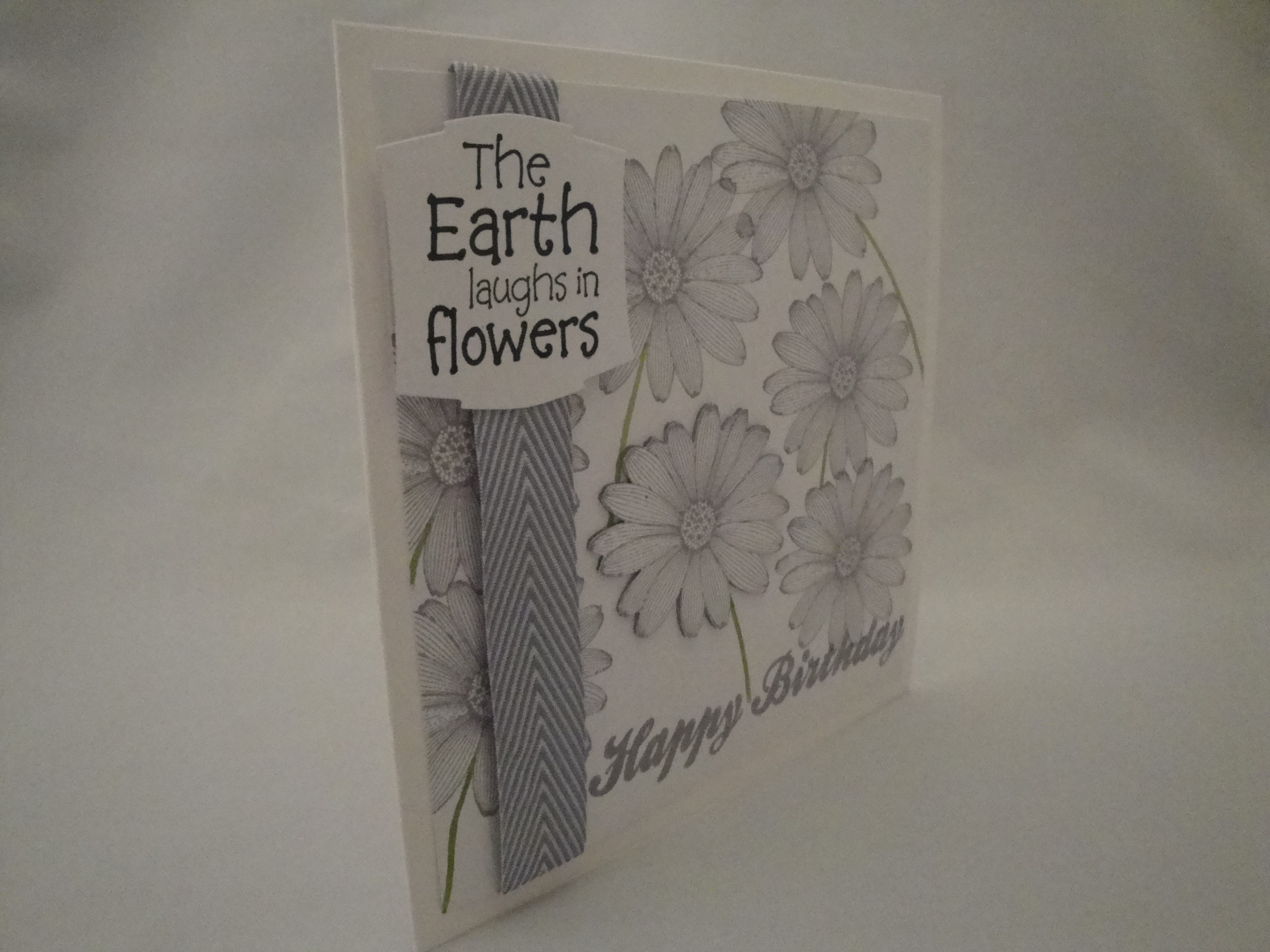 This Fairy Godmother lives in a lovely appartment with her two cats and she loves flowers and has an allotment. I wanted to create a card for her that had lots of flowers on it, but that wasn’t too fussy. As a result I went for a simple colour scheme and a few layers for interest.