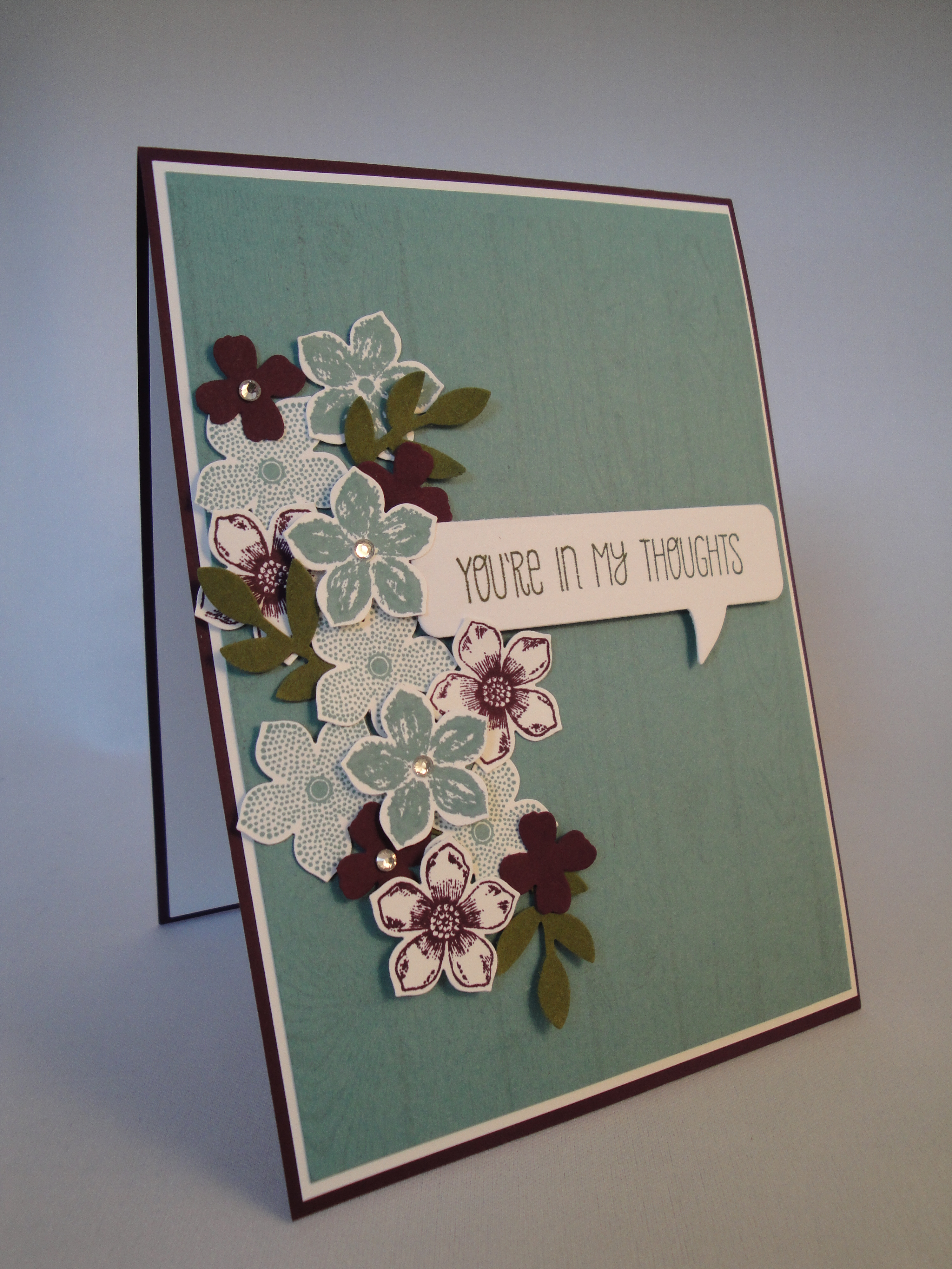 My Stampin’ UP! demonstrator Nikki organised the launch party at Debbie‘s house this morning/afternoon. Unfortunately it was rather wet, but there was lots for us to do inside, including nibbling pastries, shortbread, strawberries, making (in my case my HUGE) wish lists, buy one get one free on Nikki’s old discontinued stamps, make and take, and of course catching up with other crafty gals over a cuppa!