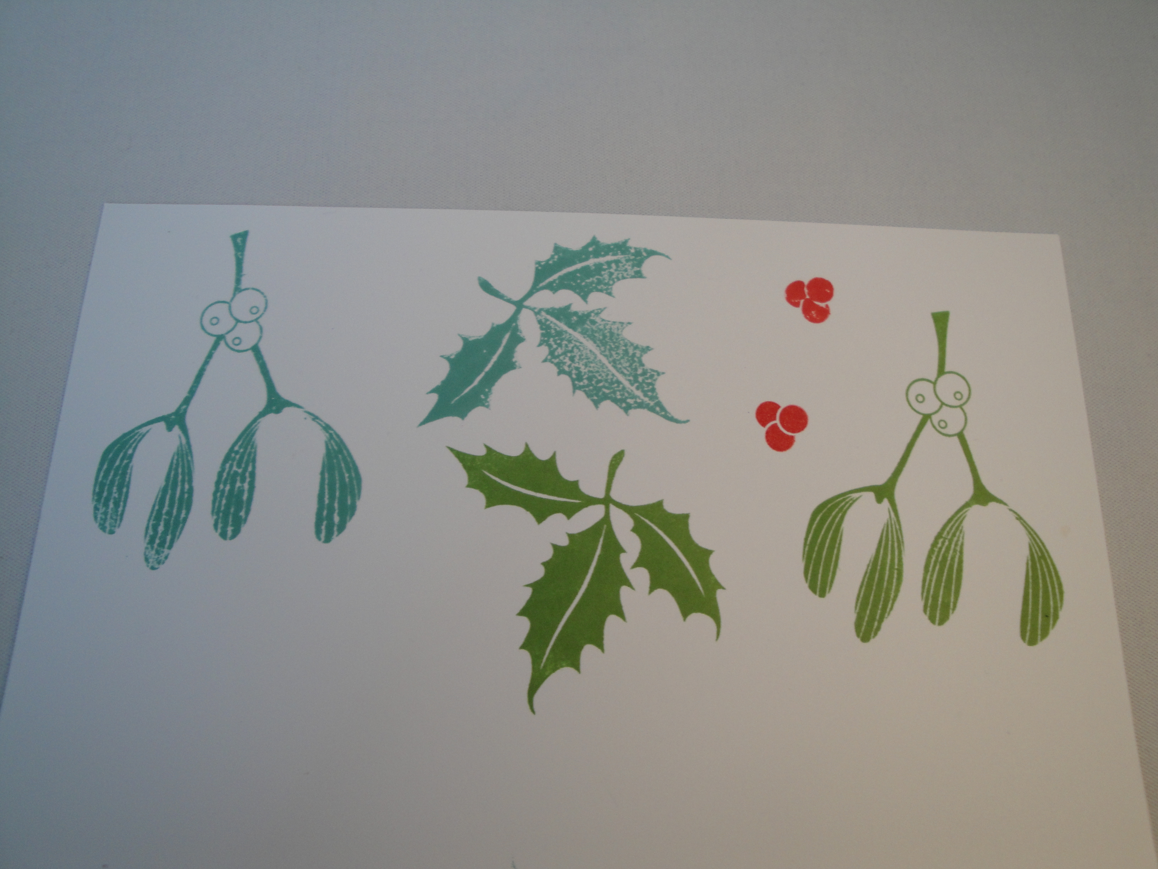 As I had used the Distress Ink to ink up the tags I thought it would be good to use them to ink the stamps as well… BIG mistake – my ‘Evergreen Bough’ and ‘Festive Berries’ inks did not stamp well at all! So instead I used Stampin’ UP! inks ‘Real Red’ and ‘Gumball Green’; I’ve included the results so you can see for yourself the difference in stamped image.