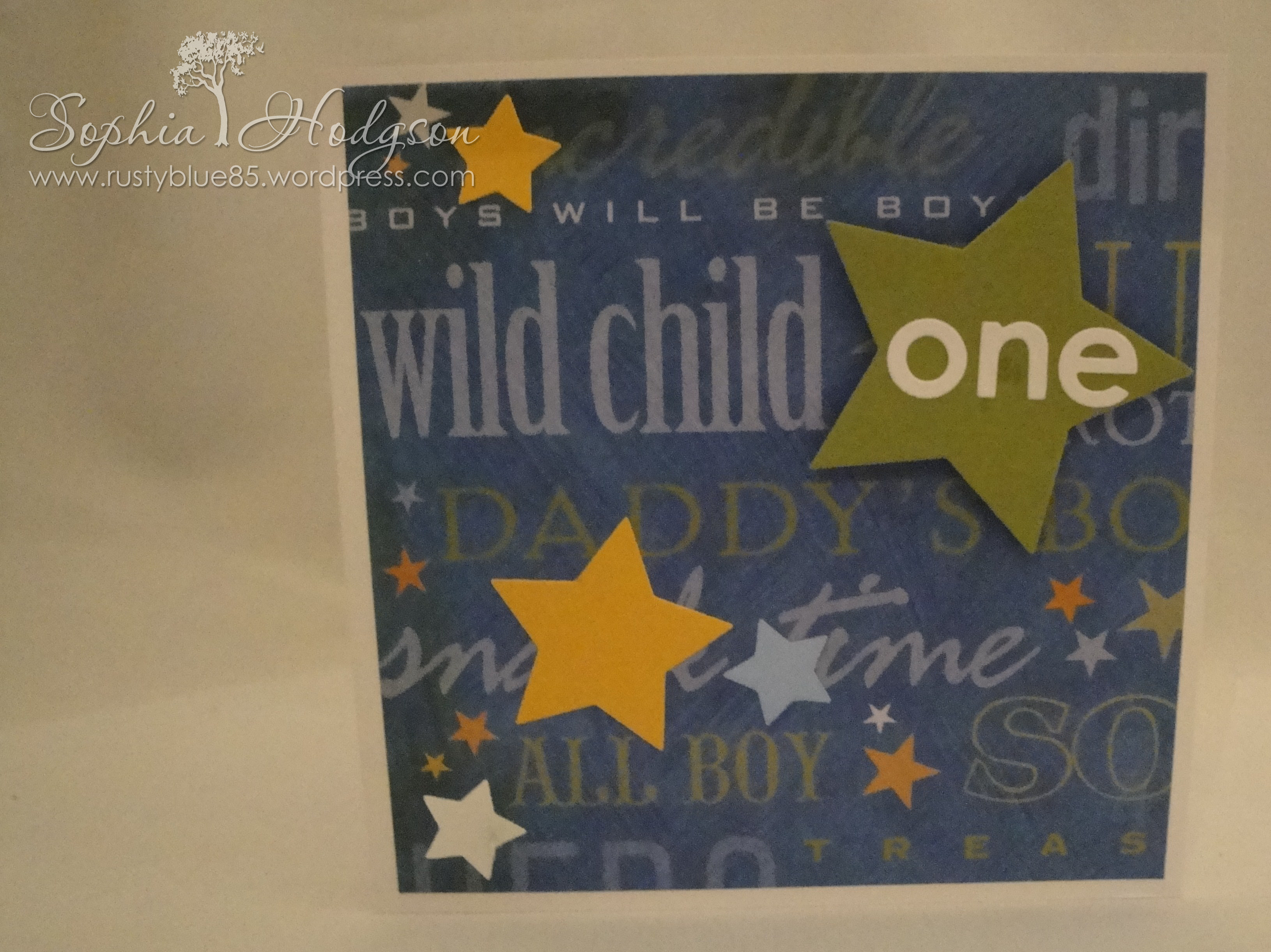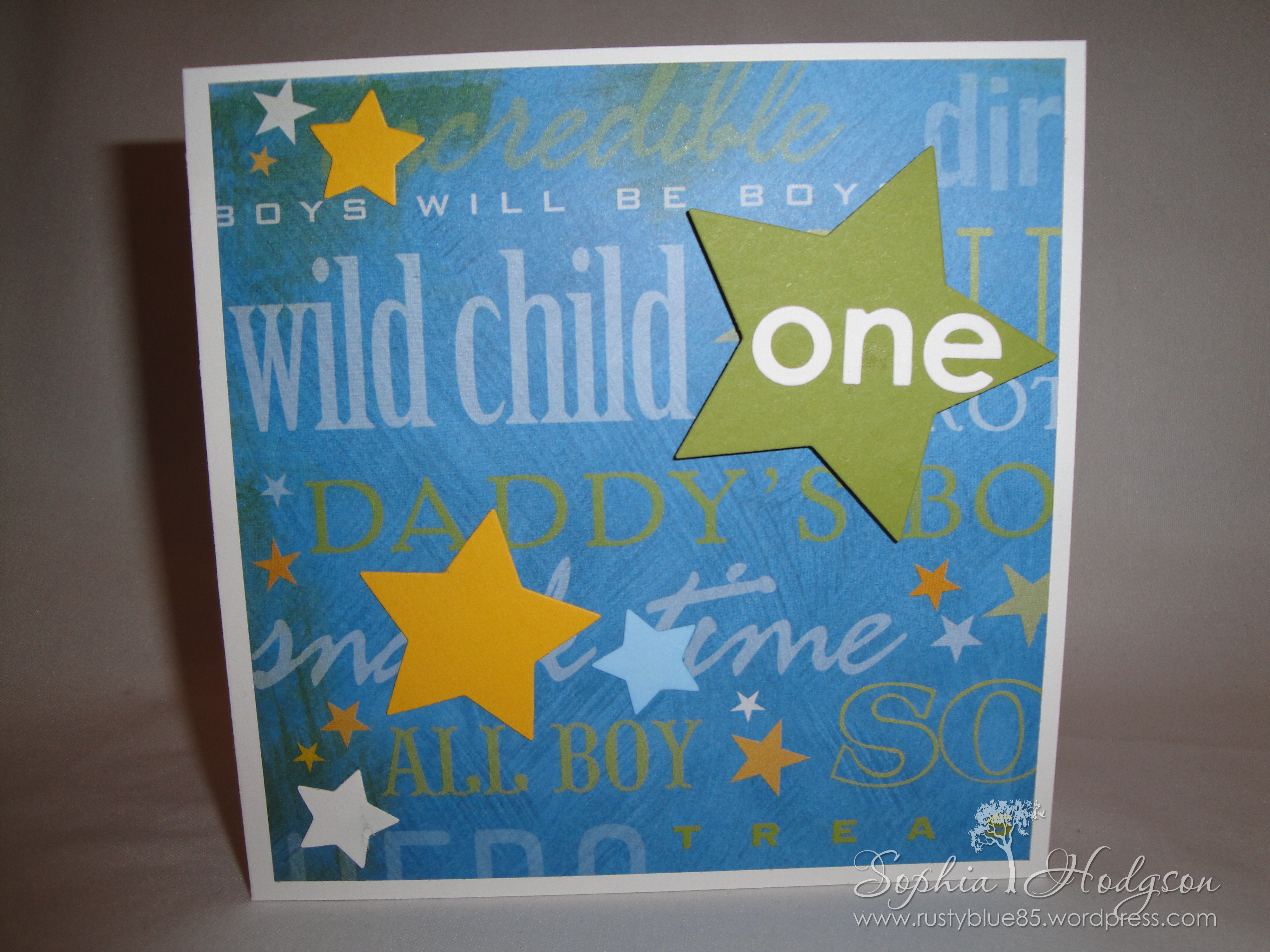 I have this 12×12 cardstock pad called ‘Hopscotch’ by K&Company which has lots of bold colours and patterns on it, and I thought this page would be perfect for a little boy’s birthday card.