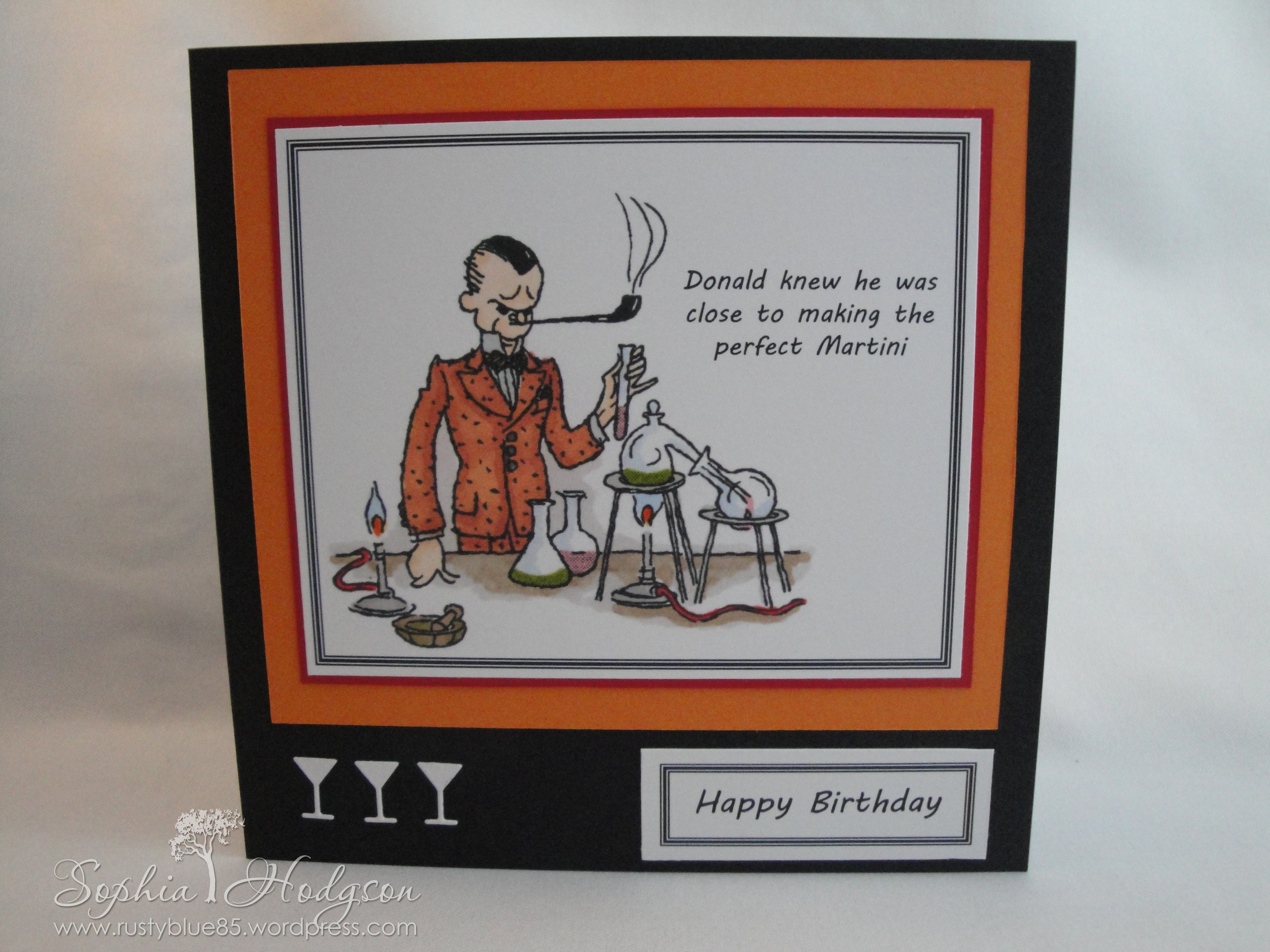 You’re probably already aware I like Acid Drops and Whatnots. I got some toppers from them & I think this set is rather good – it’s called ‘Martini Man’. My Godmother and her husband went sailing around the world & would have a drink at about 5pm, wherever they were in the world, so I thought they might like this!