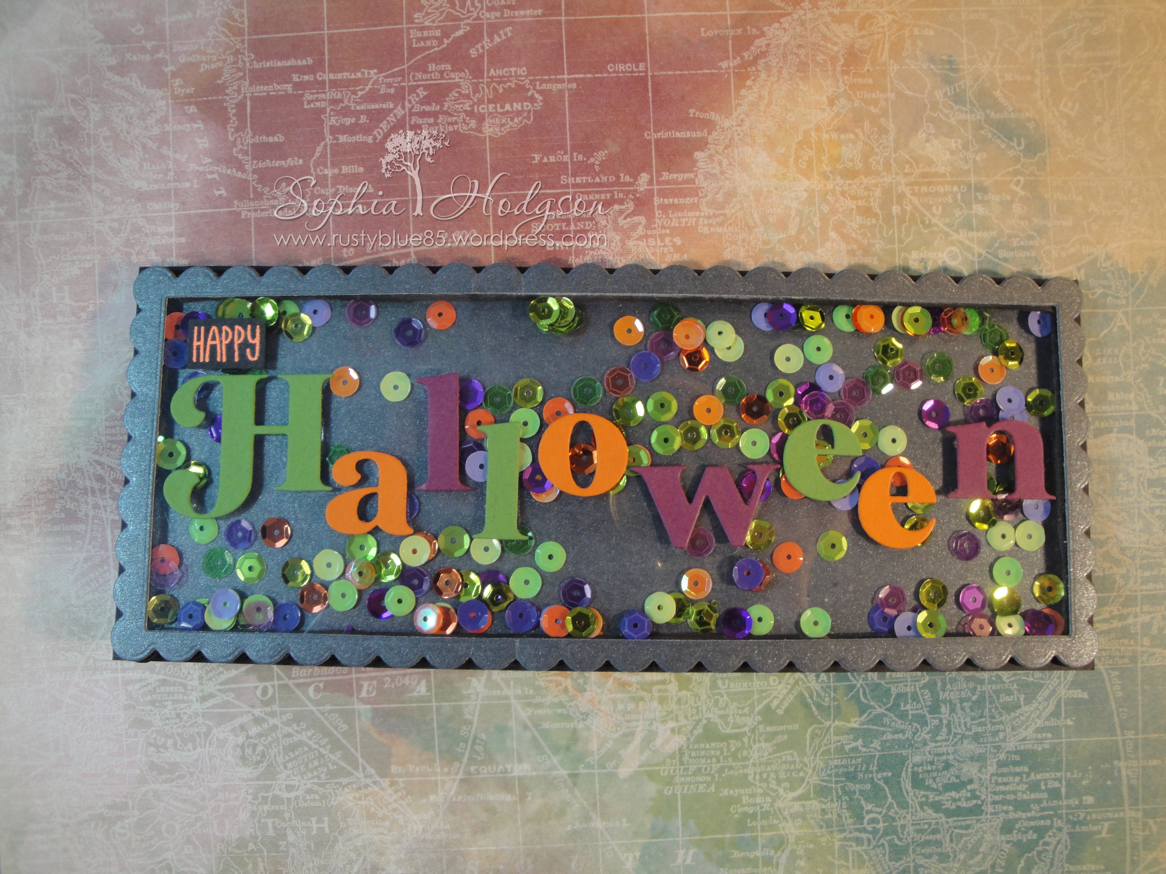 At last I was ready to adhere my shaker to the card base with liquid glue and my card was finished!